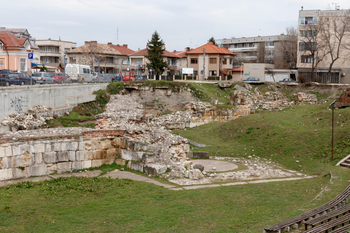 The southern fortress wall is one of the most impressive military defense facilities in Bulgaria since the Antiquity and the Middle Ages. It was built during the reign of Emperors Diocletian and Constantine the Great in the beginning of the 4th century and restored by Emperor Justinian the Great (527-565) as a fortification without analogue through Late Antiquity. It is a powerful polygonal citadel, measuring 350 x 240 m, with 3,60 - 4,20 m thick walls, with two gates and over 12 m high pentagonal and triangular towers. This fortress, destroyed by Slavs and Proto-Bulgarians in the 7th century , was restored by Khan Omurtag (814-831) and used as the citadel of the city without interruption until the beginning of the 19th century.[1]